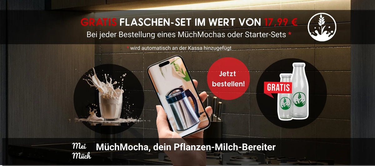 Mit dem MüchMocha bereitest du deine eigene pflanzliche Milch ganz einfach zuhause zu – aus natürlichen Zutaten, ganz nach deinem Geschmack.